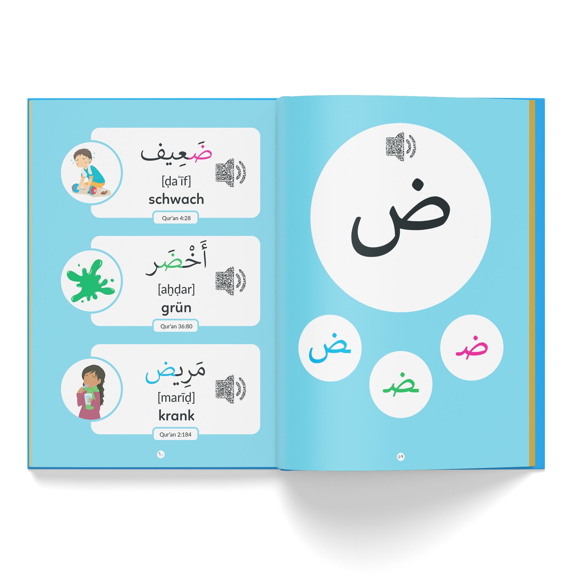 Ich lerne das arabische Alphabet anhand von Buchstabenlauten und Wörtern aus dem Qur’an